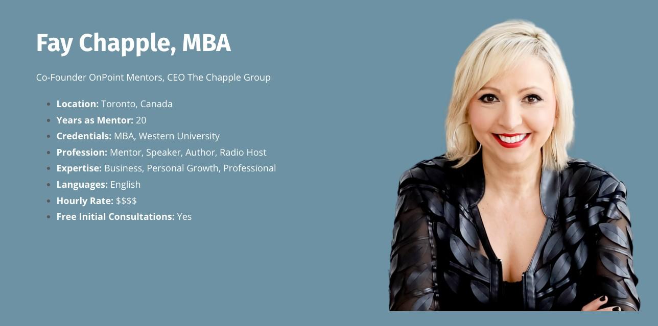 OnPoint Mentors has gathered a variety of mentors from all different training modalities - from traditional consulting to more alternative coaching styles so you can select who you resonate with best. We invite you to explore our mentor directory to find the one that best suits you and your needs. To help you choose, check out the mentor profiles to find information about their expertise, FAQs, an intro video, testimonials and programs they may have.